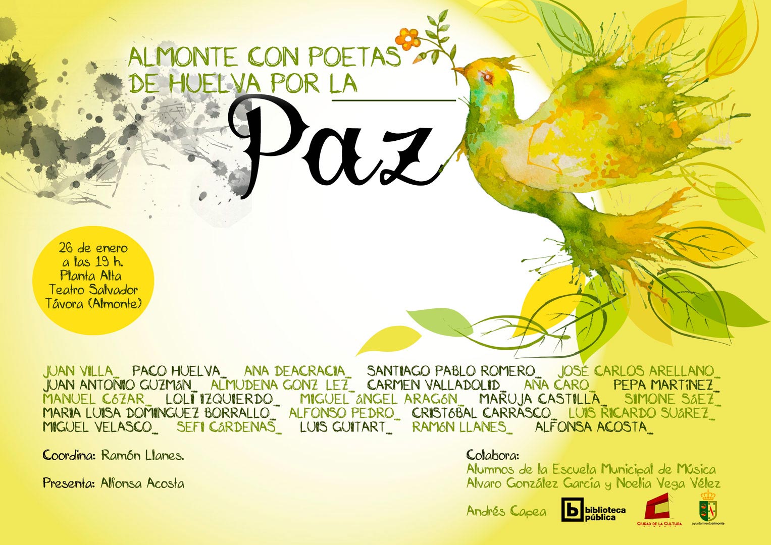 Almonte con Poetas de Huelva por la Paz, con motivo del próximo Día Mundial de la Paz, el 30 de enero.