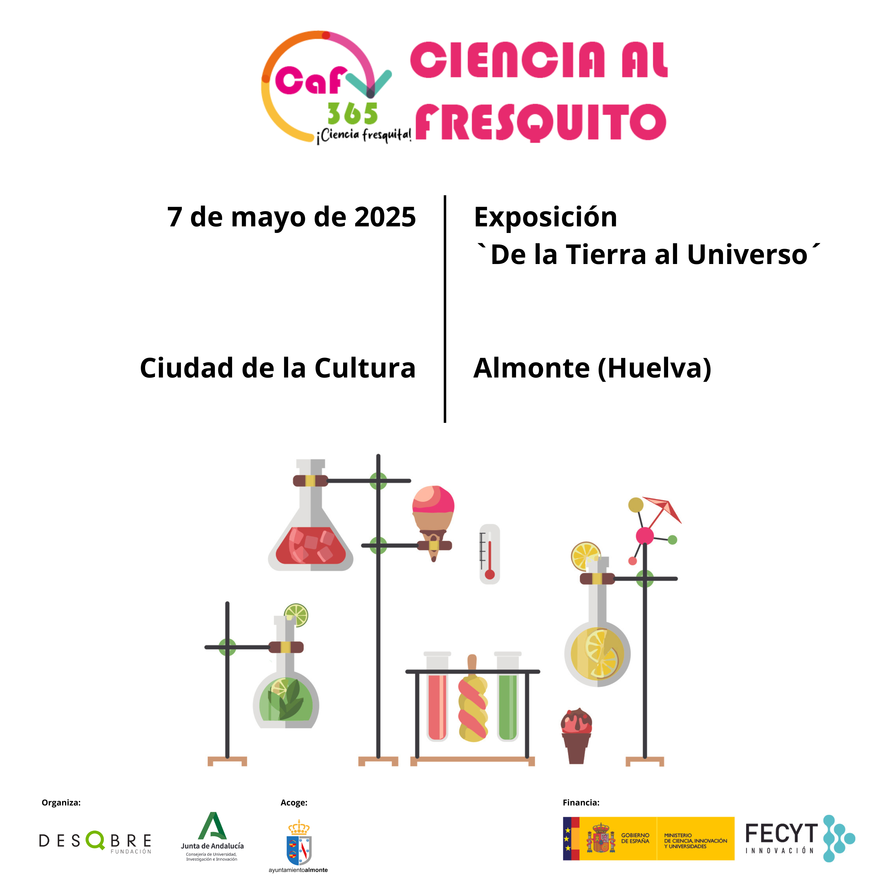 La actividad se encuentra incluida en el programa Ciencia al Fresquito 365 ¡Ciencia fresquita!, una iniciativa organizada y cofinanciada por la Fundación Descubre y la Consejería de Universidad, Investigación e Innovación de la Junta de Andalucía y que cuenta con el apoyo de la Fundación Española para la Ciencia y la Tecnología (FECYT).