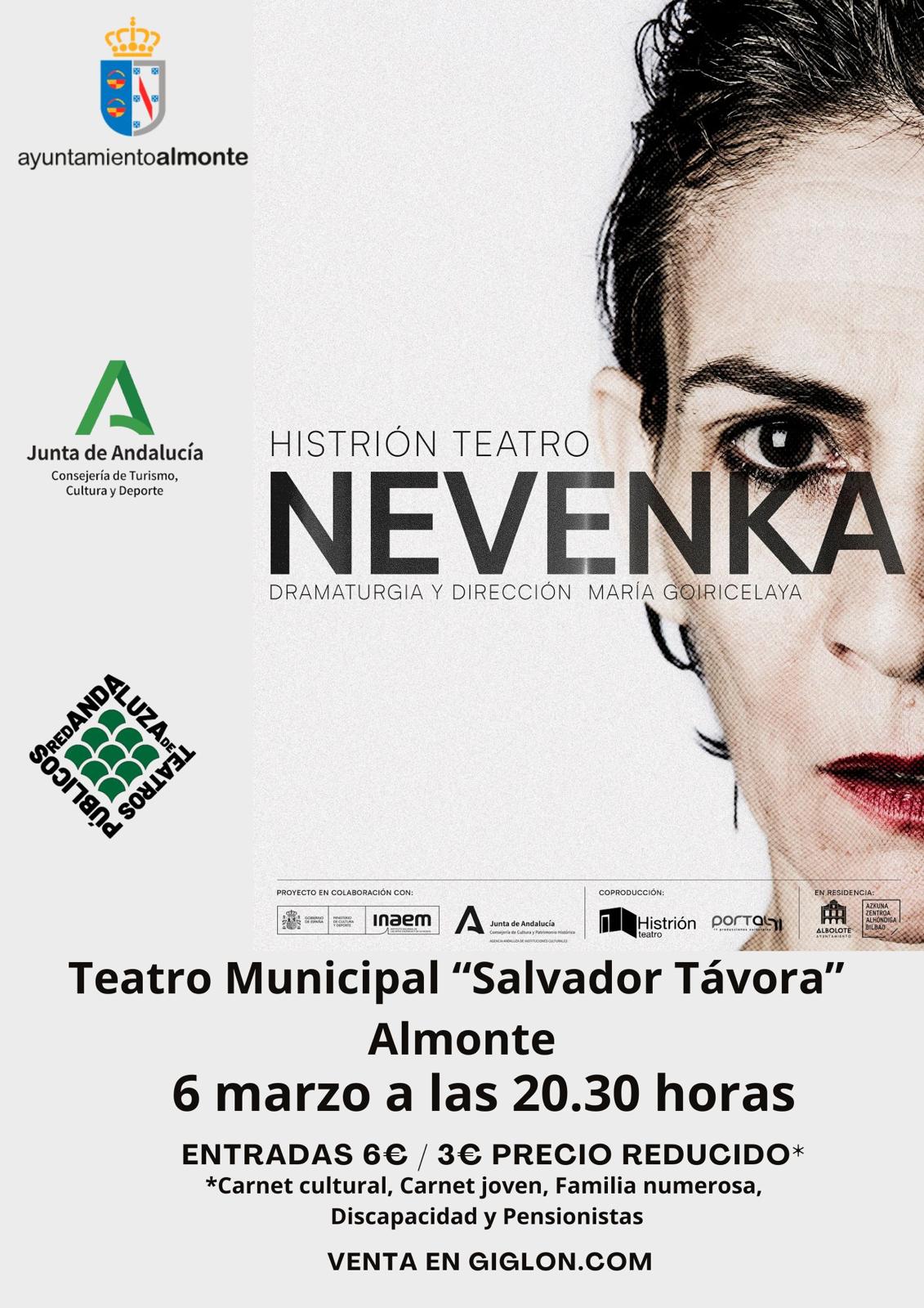 No te puedes perder el espectáculo "NEVENKA" que se va a celebrar el próximo día 6 de marzo a las 20:30h en el  Teatro Municipal Salvador Távora de Almonte.