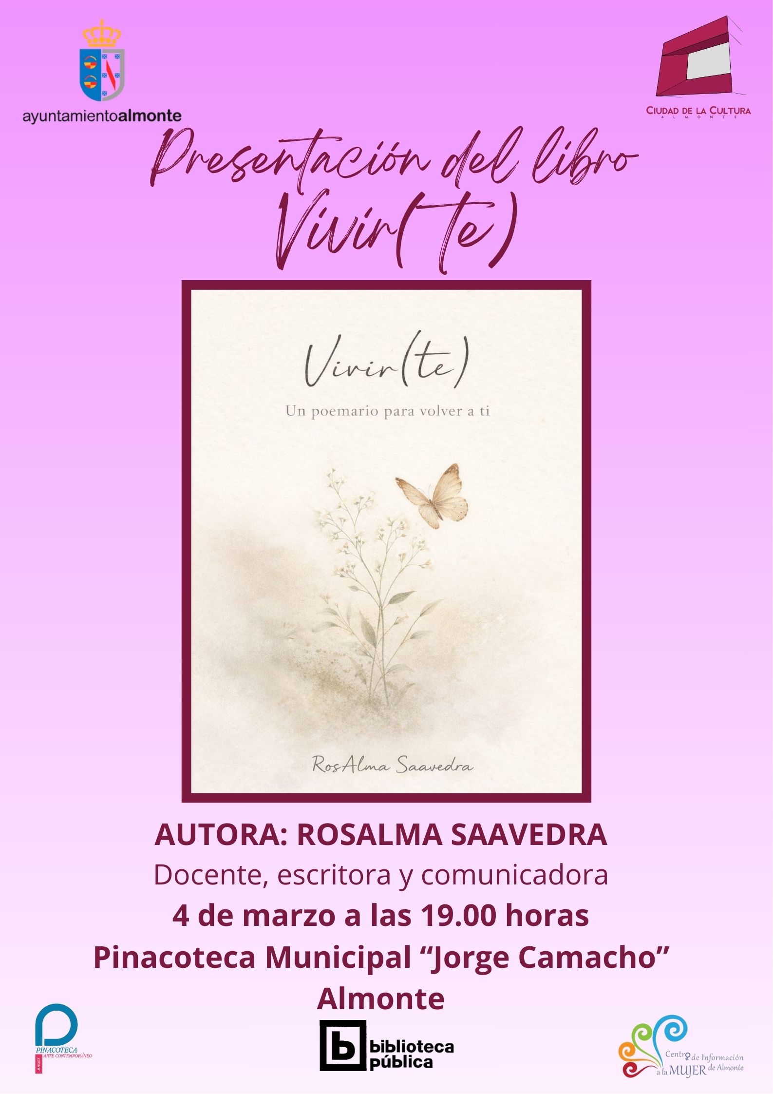Entrada libre hasta completar aforo. ¡Acompañemos a una autora de nuestra tierra en este día tan especial!