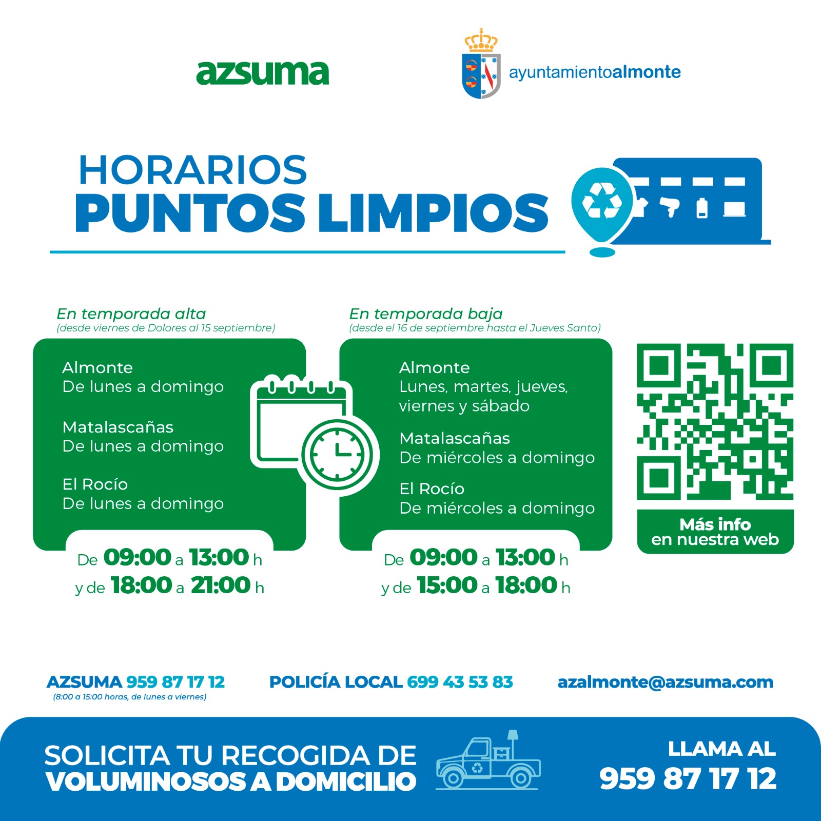 HORARIO DEL PUNTO LIMPIO EN ALMONTE, EL ROCÍO Y MATALASCAÑAS