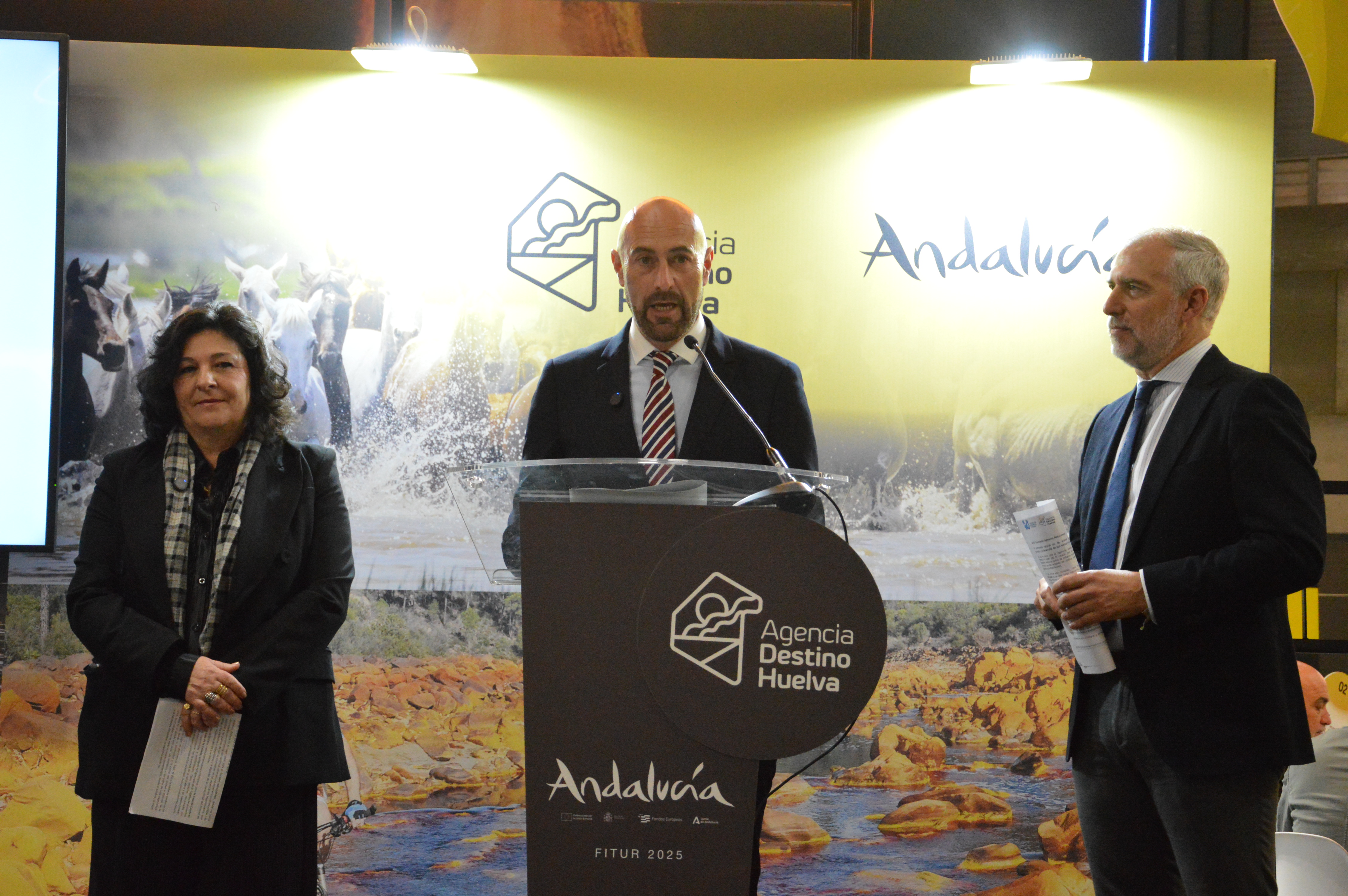 Descargar PdfEl Ayuntamiento de Almonte, representado por la primera teniente de alcalde, Antonia Rocío Pérez; y el concejal de Turismo, Tomás Ruíz, ha presentado hoy en FITUR un ambicioso plan para fortalecer el ecoturismo en el municipio, destacando la recuperación y conservación de entornos naturales únicos en Doñana. Estas iniciativas refuerzan el compromiso histórico de la localidad con la sostenibilidad ambiental, además de posicionarse como un referente en turismo responsable. Junto a ellos ha estado Emiliano Cabot, vicepresidente de la Agencia Destino Huelva.