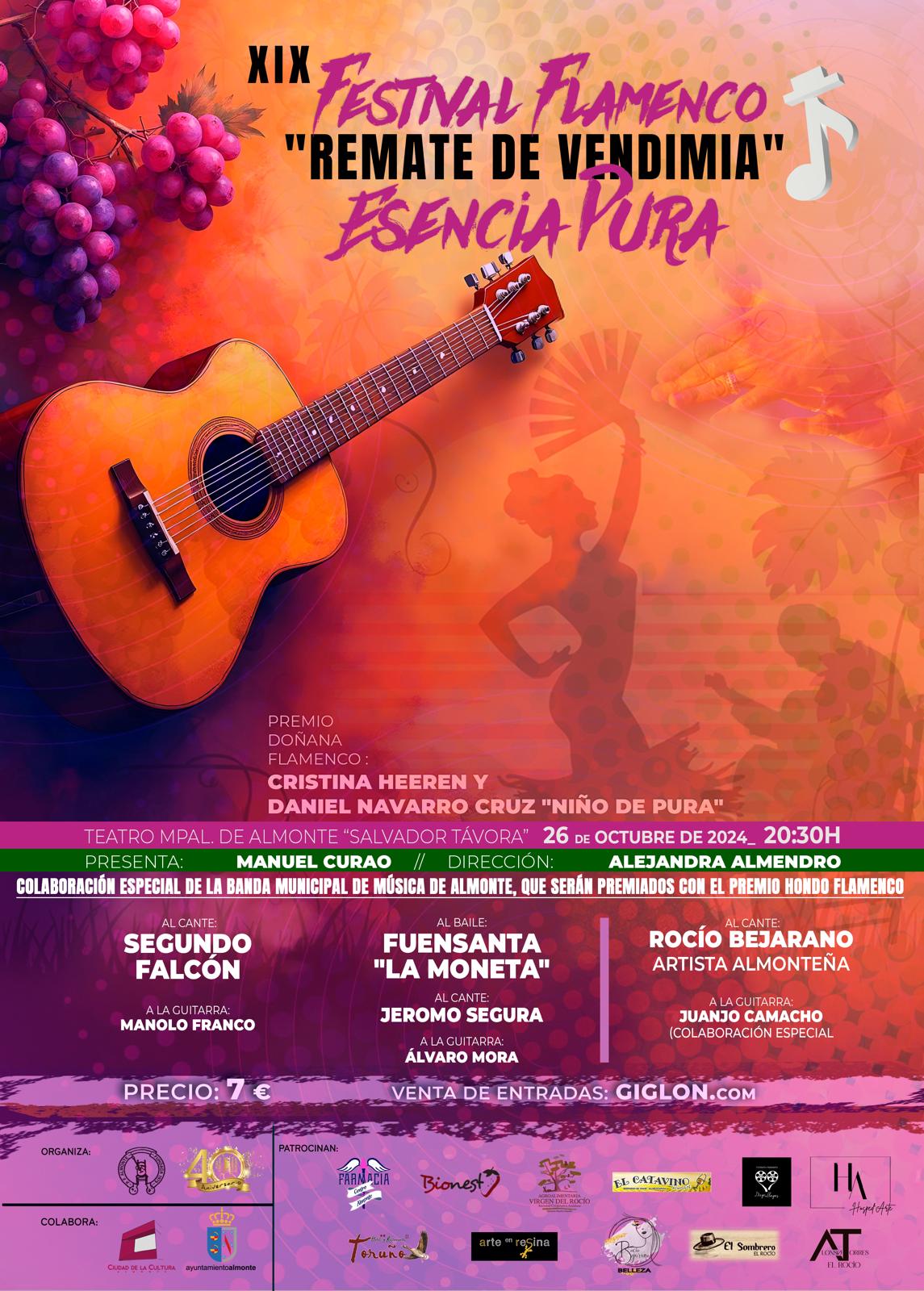 Integrado en la programación cultural de otoño, este evento está organizado por la Peña Flamenca de Almonte, con la colaboración del Ayuntamiento del municipio. El título del festival en esta ocasión es “Esencia Pura”, reflejando la fusión simbólica entre dos pilares fundamentales del flamenco, la esencia, que encarna el legado y dedicación de Cristina Heeren, y Pura, el apellido artístico del guitarrista Daniel Navarro, Niño de Pura.