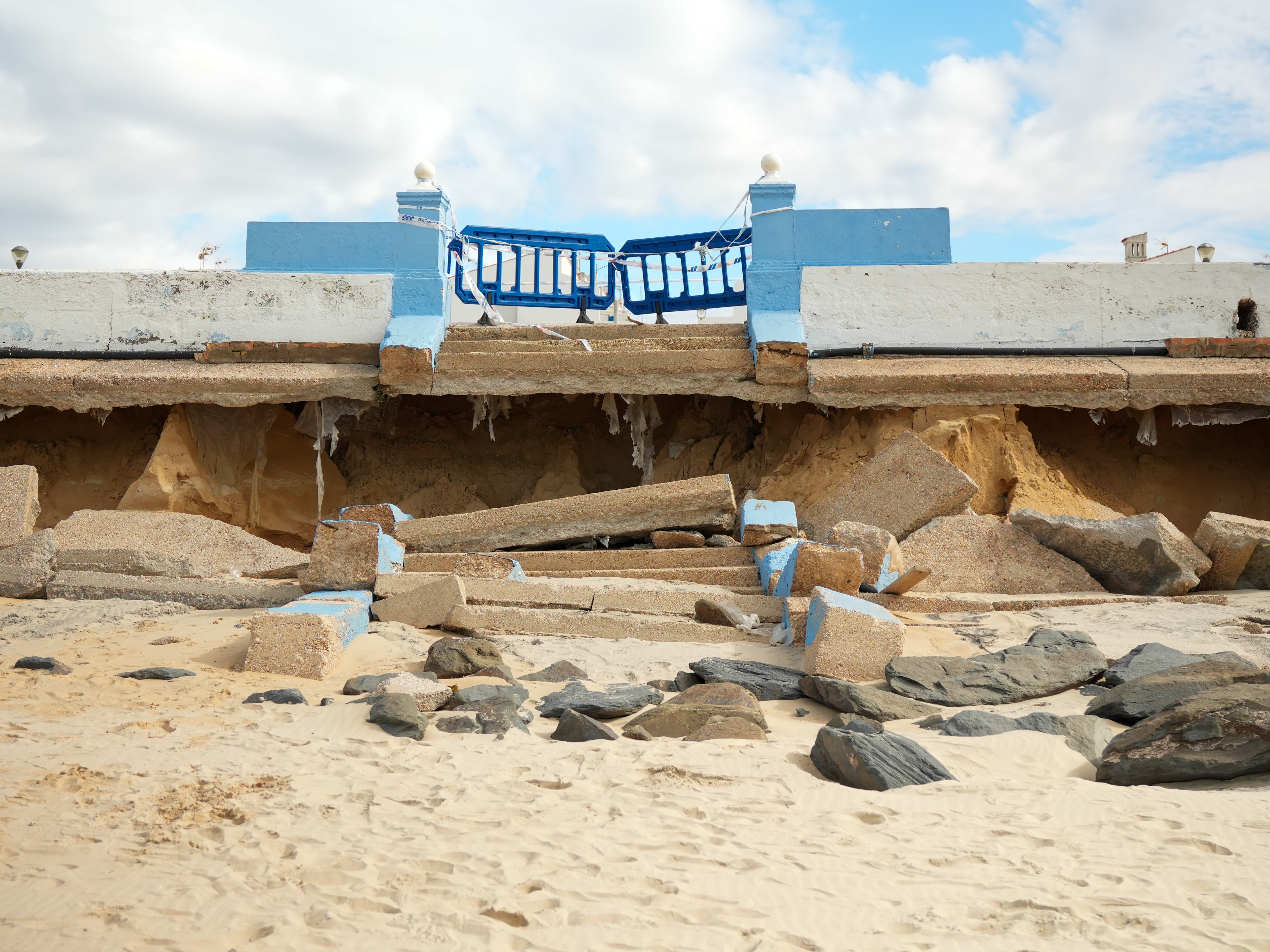 Desde el Ayuntamiento de Almonte han recordado que el mantenimiento de infraestructuras de defensa costera y la regeneración del litoral son competencias del Estado. La actuación local en la conservación ordinaria, no puede sustituir la intervención que corresponde al Ministerio cuando se trata de daños estructurales, como los ocasionados por los temporales que han afectado gravemente al paseo marítimo y destruido accesos a la playa en la zona de Caño Guerrero.