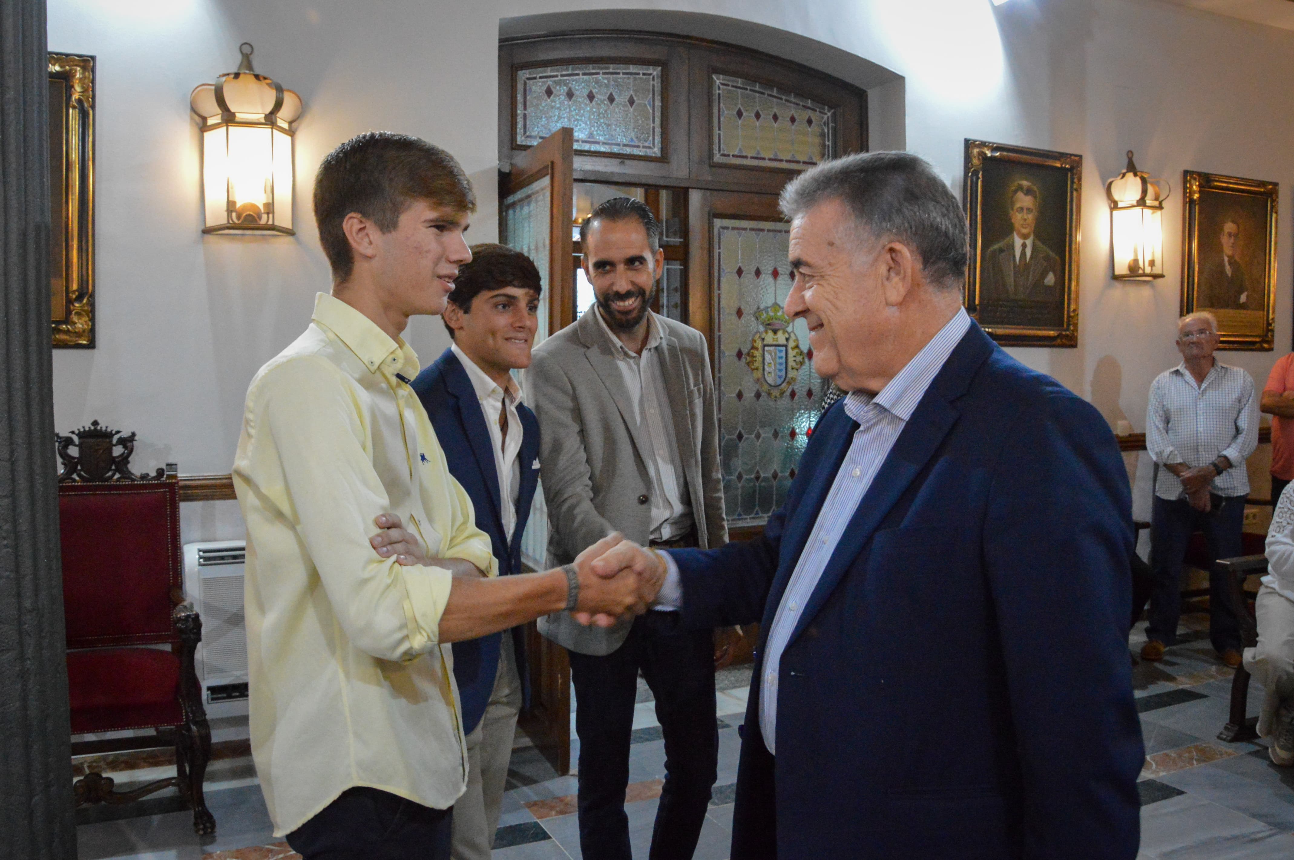 Descargar PdfEl Alcalde de Almonte, Francisco Bella, ha recibido en el Ayuntamiento a los campeones de España de Doma Vaquera de Menores, en sus categorías, los almonteños Alfonso Martín y Álvaro Ramos. Un campeonato que se celebró en la Real Escuela Andaluza del Arte Ecuestre, en Jerez de la Frontera.
