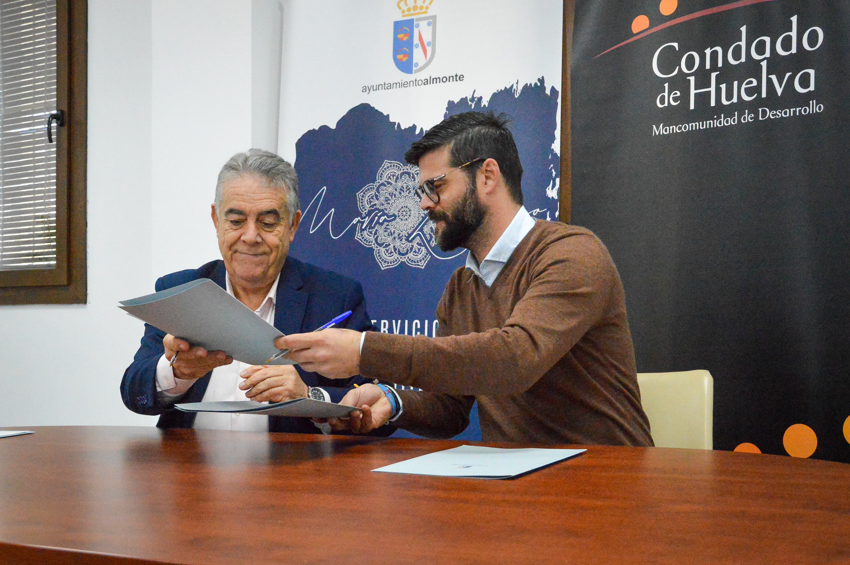 Descargar PdfHoy el Ayuntamiento de Almonte y la Mancomunidad de Desarrollo del Condado de Huelva han firmado un convenio de colaboración, enmarcado en la ejecución del programa de empleo y formación "ARCOIRIS II". El acto, en el que han rubricado su firma el alcalde, Francisco Bella, y el presidente de la entidad condal, Francisco Pérez, se ha desarrollado en el centro para la igualdad y el bienestar social María Zambrano.