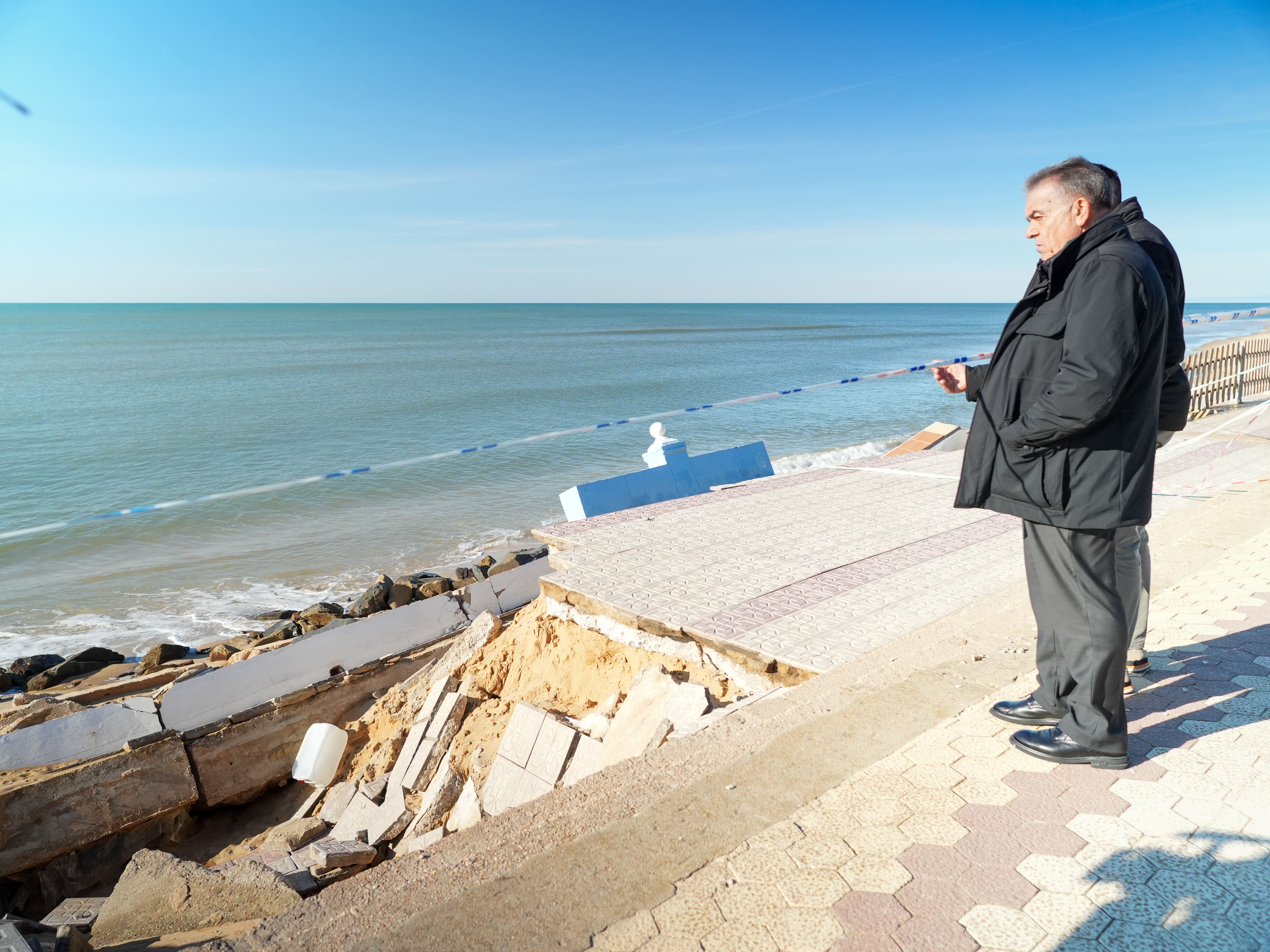 Francisco Bella reclama al Miteco a intervenir de urgencia en Matalascañas ante la erosión que avanza hacia el paseo marítimo