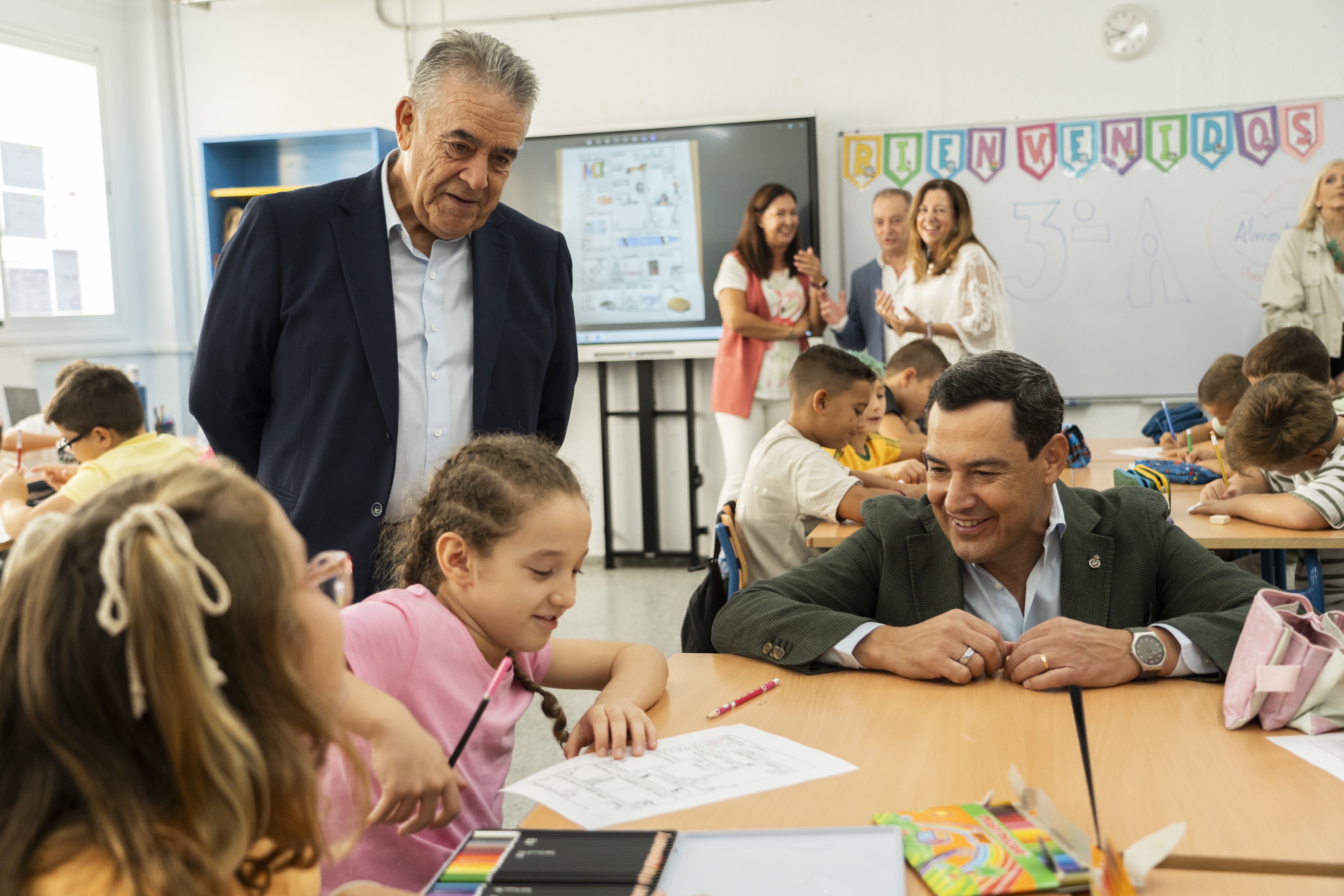 Descargar PdfEl presidente de la Junta de Andalucía, Juan Manuel Moreno, inauguró este miércoles el curso escolar 2025/26 a nivel regional en un acto celebrado en el colegio Los Llanos, de Almonte.