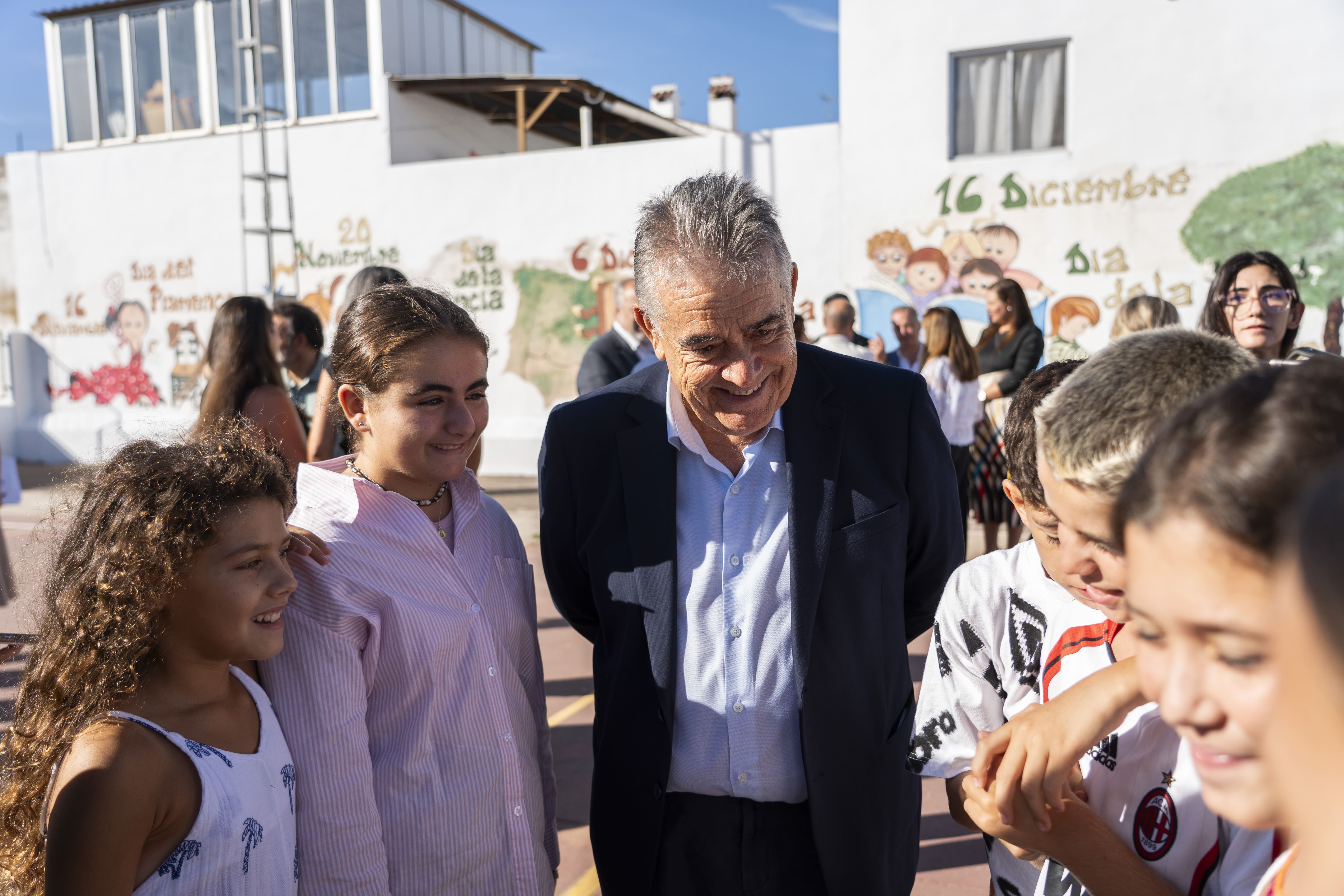 El presidente y el alcalde estuvieron acompañados por la consejera de Desarrollo Educativo y Formación Profesional, María del Carmen Castillo; y también acudió la concejal de Educación del Ayuntamiento de Almonte, Antonia Rocío Pérez; quienes fueron recibidos por el director del colegio Los Llanos, Sergio Rosado.