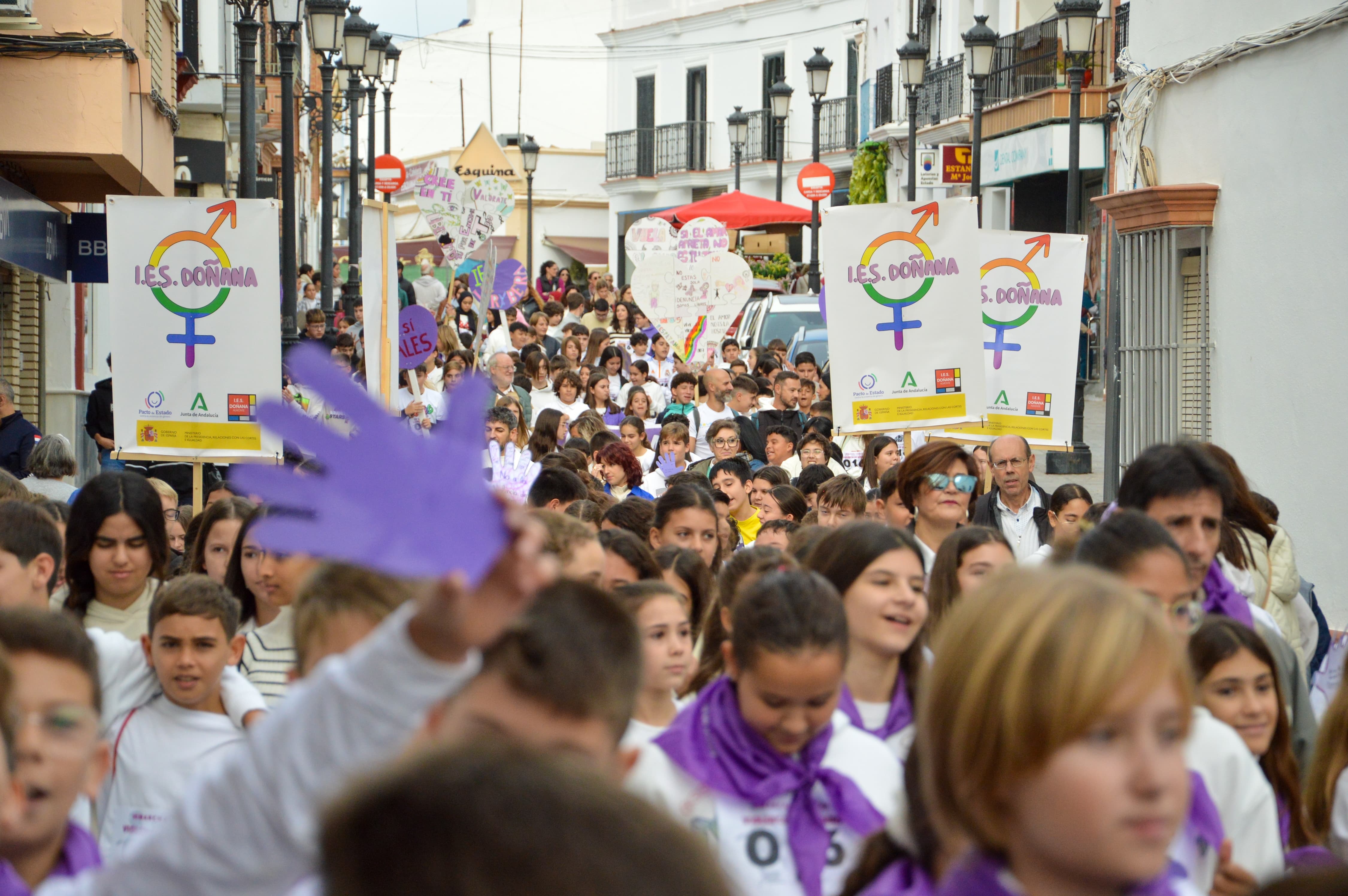 Descargar PdfCientos de niños y niñas de Almonte, El Rocío y Matalascañas se han reunido esta mañana en la Plaza Virgen del Rocío para participar en la VI Marcha Escolar contra la Violencia de Género. Bajo el lema "Paremos la violencia, son vidas", el alumnado de los centros educativos ha protagonizado una movilización que simboliza su compromiso con la igualdad y su rechazo absoluto a cualquier forma de violencia machista.