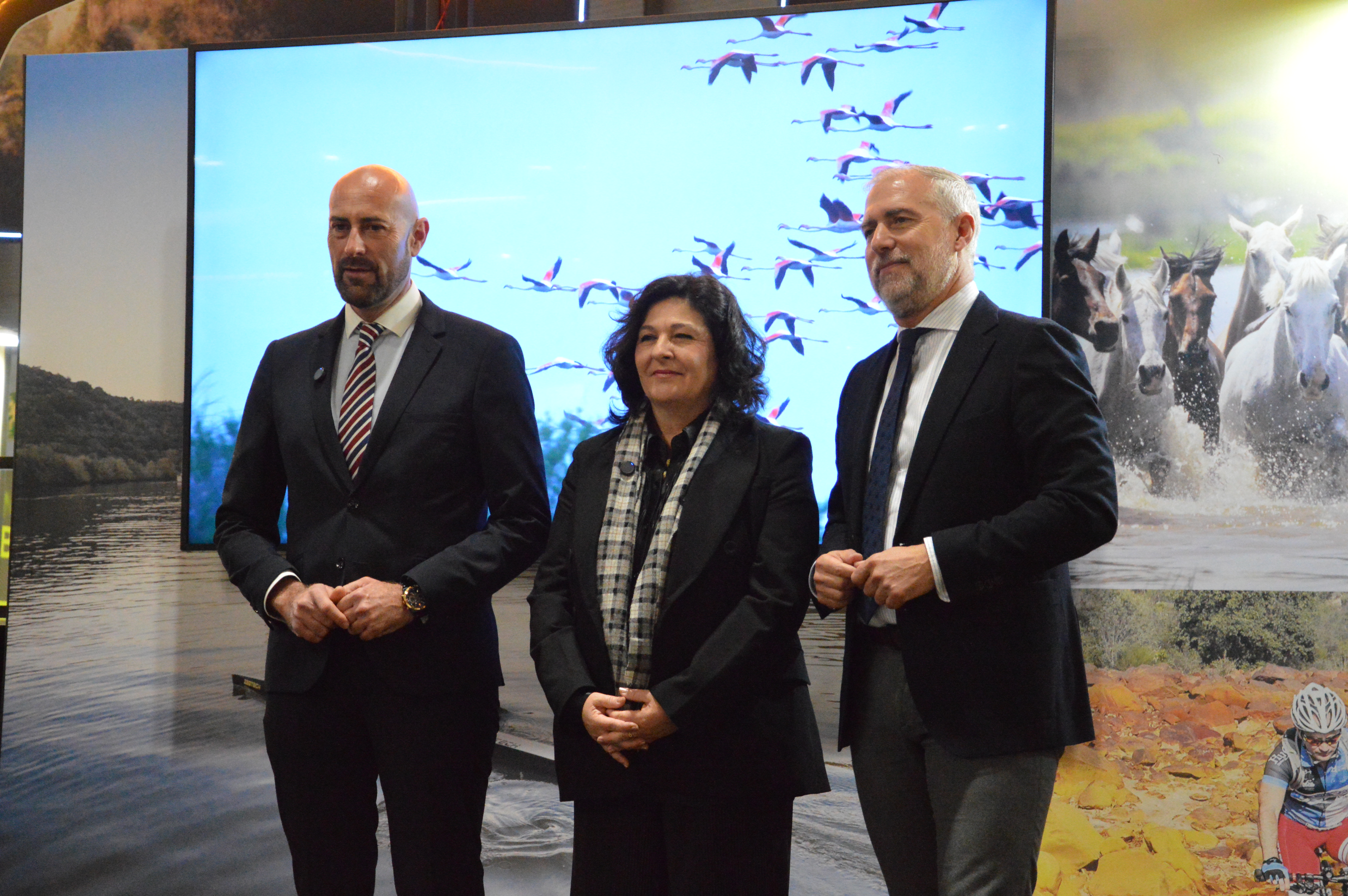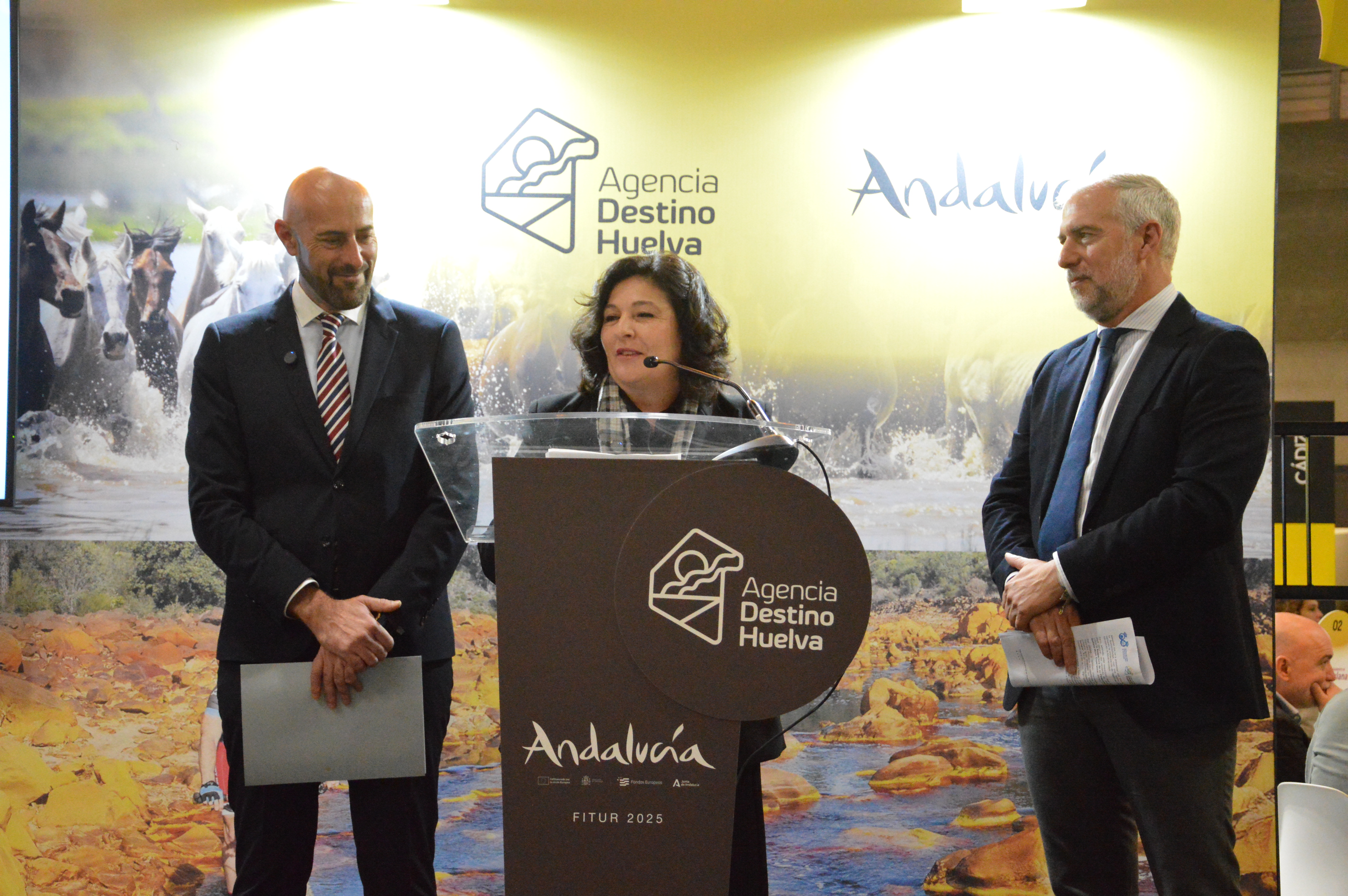 Descargar PdfEl Ayuntamiento de Almonte ha puesto en valor en FITUR la segunda edición del Doñana Music Experience, un destacado festival de conciertos que ya fue todo un éxito el pasado verano, y que los próximos julio y agosto volverá a acoger Matalascañas. Además, se ha anunciado la reapertura de la Pinacoteca Sala Jorge Camacho, como una interesante oferta que enriquece la cultura del municipio. La primera teniente de alcalde, Antonia Rocío Pérez, y el concejal de Turismo, Tomás Ruíz, han presentado estas propuestas. Junto a ellos ha estado Emiliano Cabot, vicepresidente de la Agencia Destino Huelva.