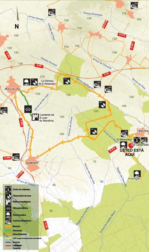 Parte desde la carretera de Huelva - Matalascañas (H- 492) a la altura del Km. 46 se desarrolla de forma circular y es especialmente atractivo por sus espectaculares vistas tanto del 0céano Atlántico como de las amplias llanuras verdes del Abalario. El suelo es de arena muy fina y blanca que hace aún más duro el camino, presentando varios tramos difíciles por su acusada pendiente, por lo que es recomendable llevar siempre agua y realizarlo en horas o épocas en las que no haga excesivo calor.